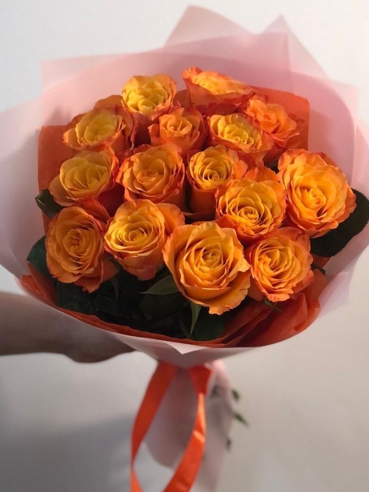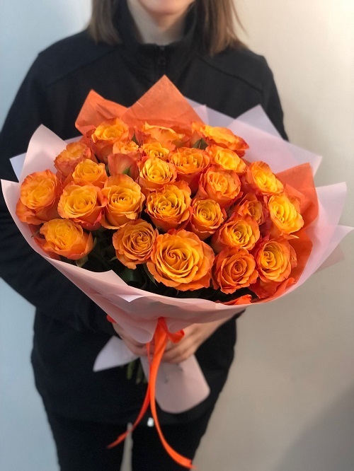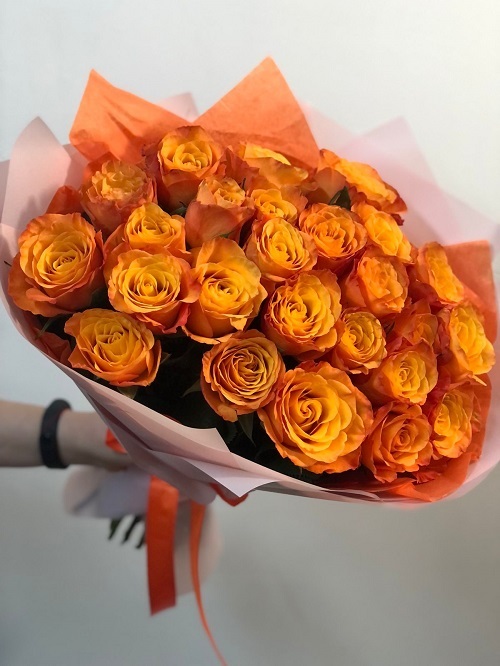 Букет ярких оранжевых роз.