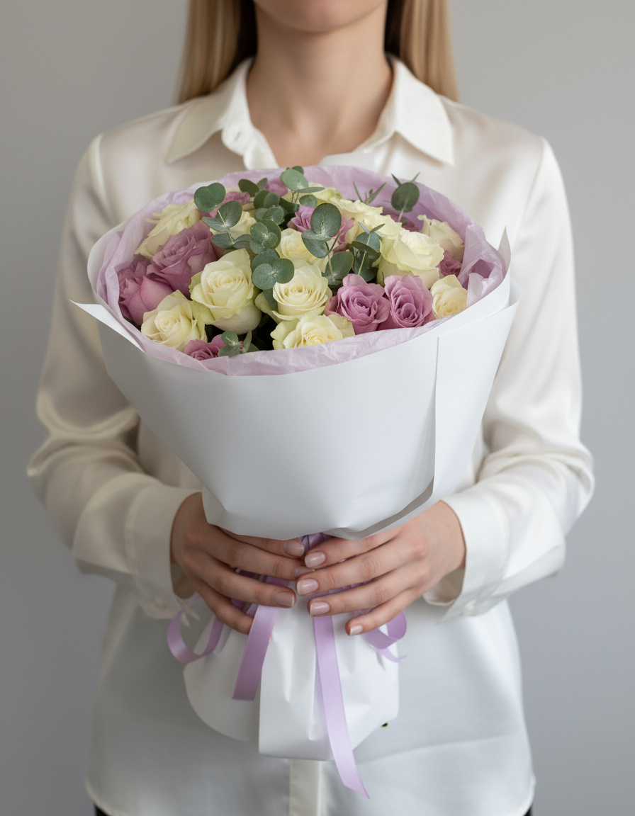 Мы тщательно подбираем каждый цветок, чтобы букет выглядел идеально и радовал своей свежестью как можно дольше. Аккуратная упаковка сохраняет красоту композиции.