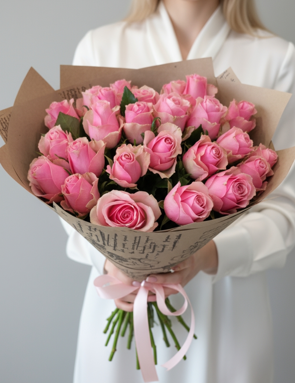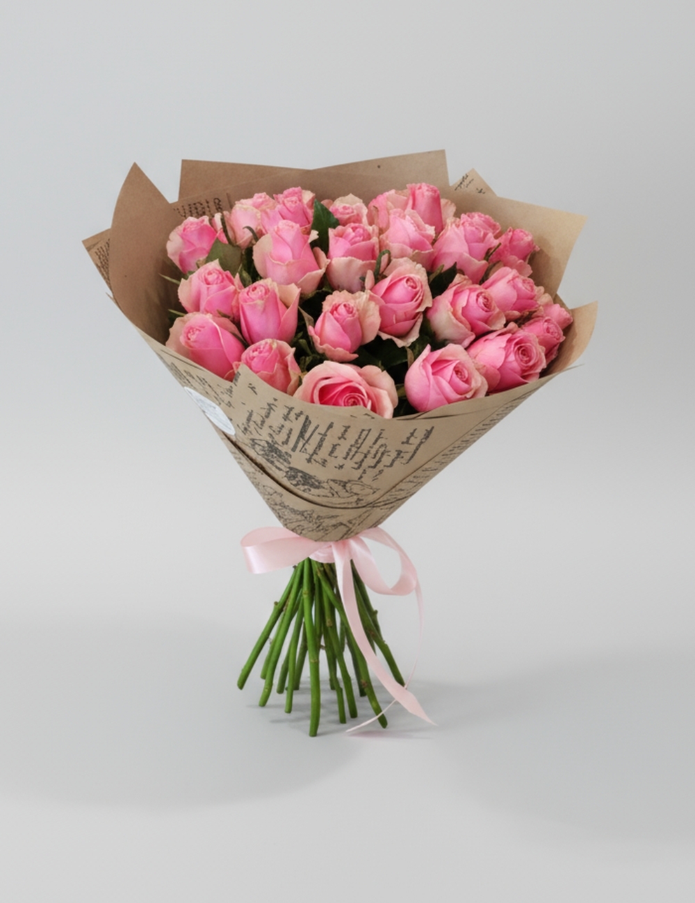 Букет розовых роз в крафте