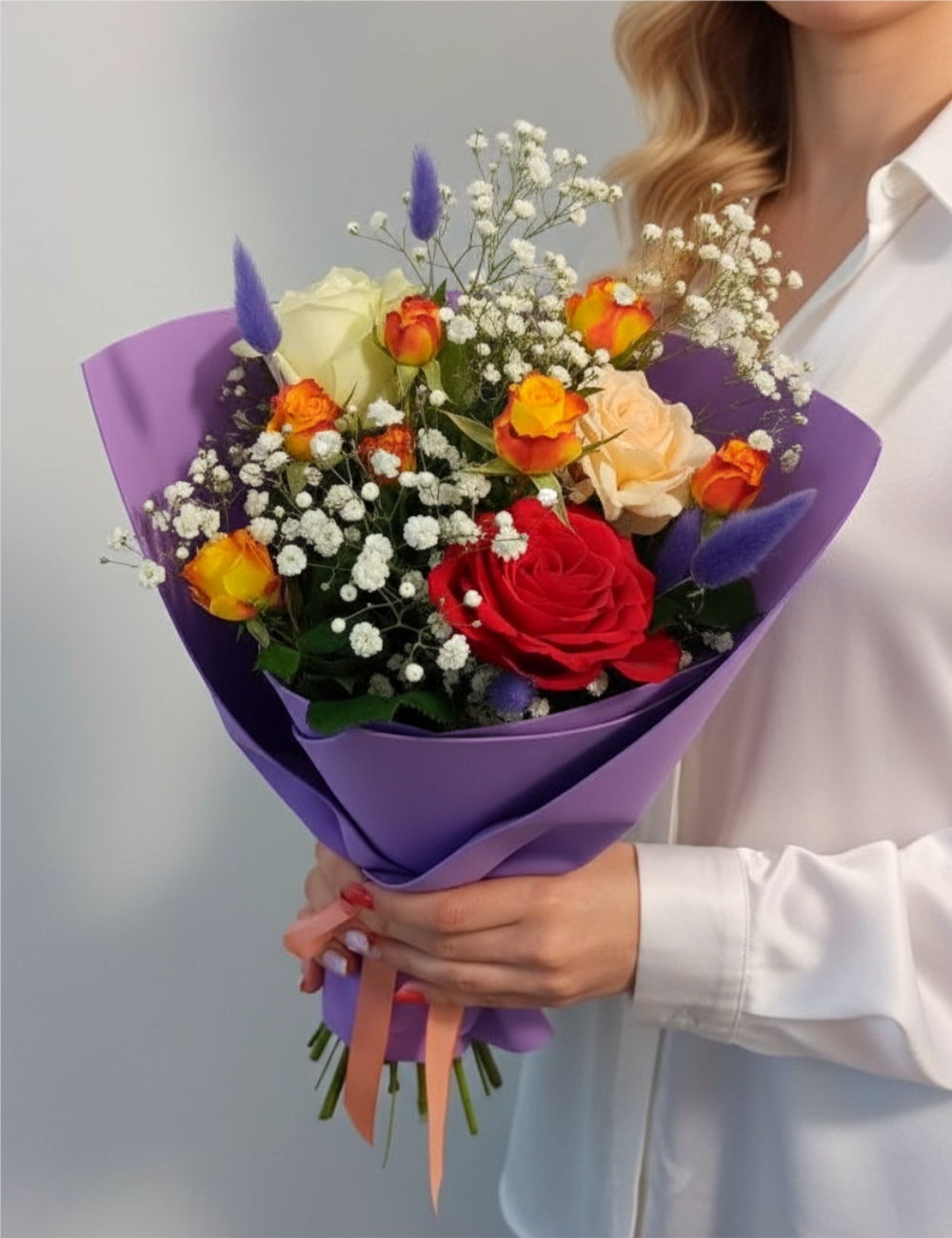 Роза, Альстромерия, Гипсофила, Диантус