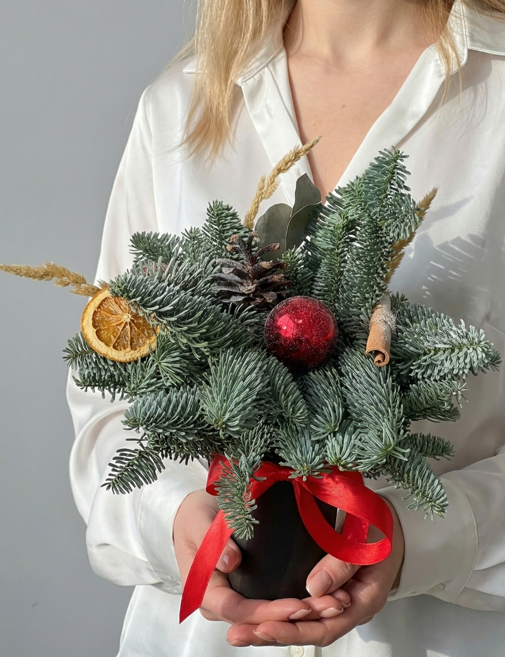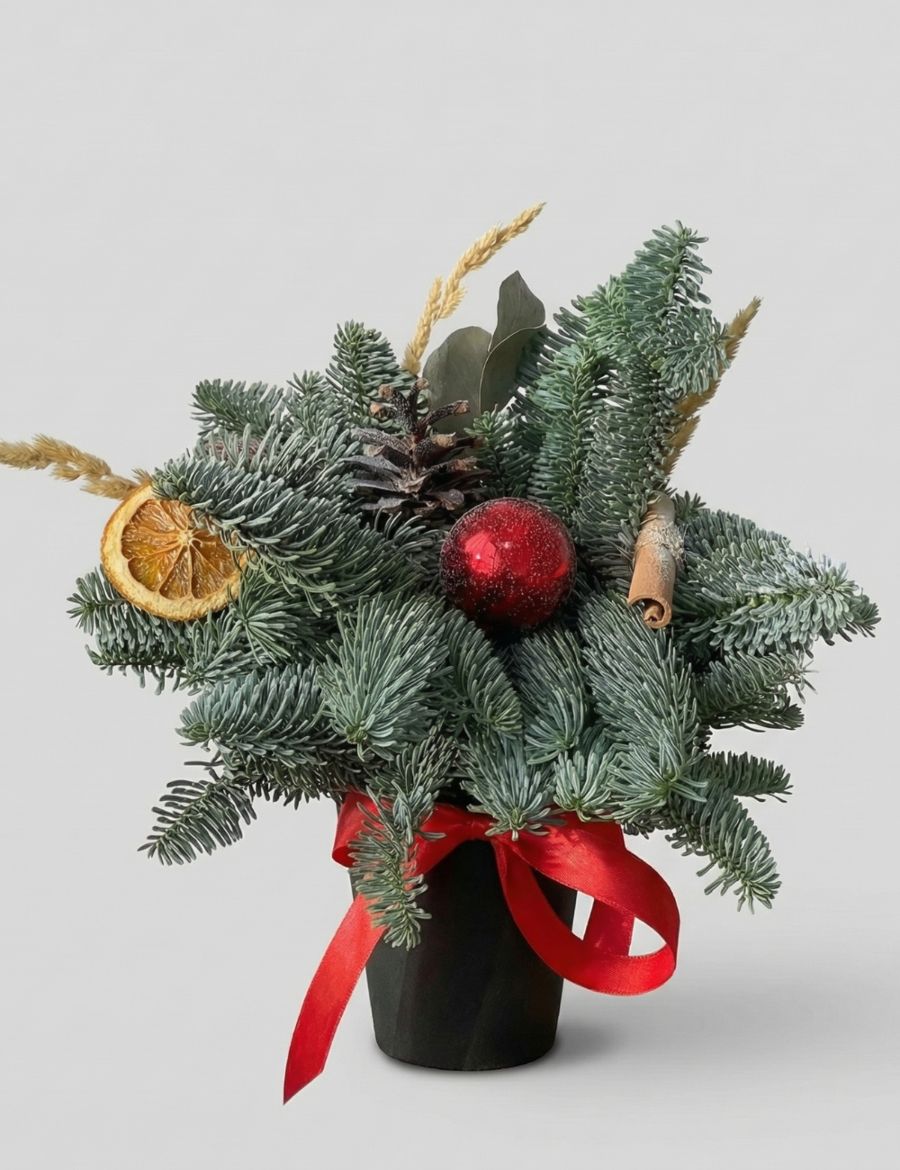 Состав: нобилис, корица, сушенный апельсин, елочные игрушки, стаканчик, флористический оазис